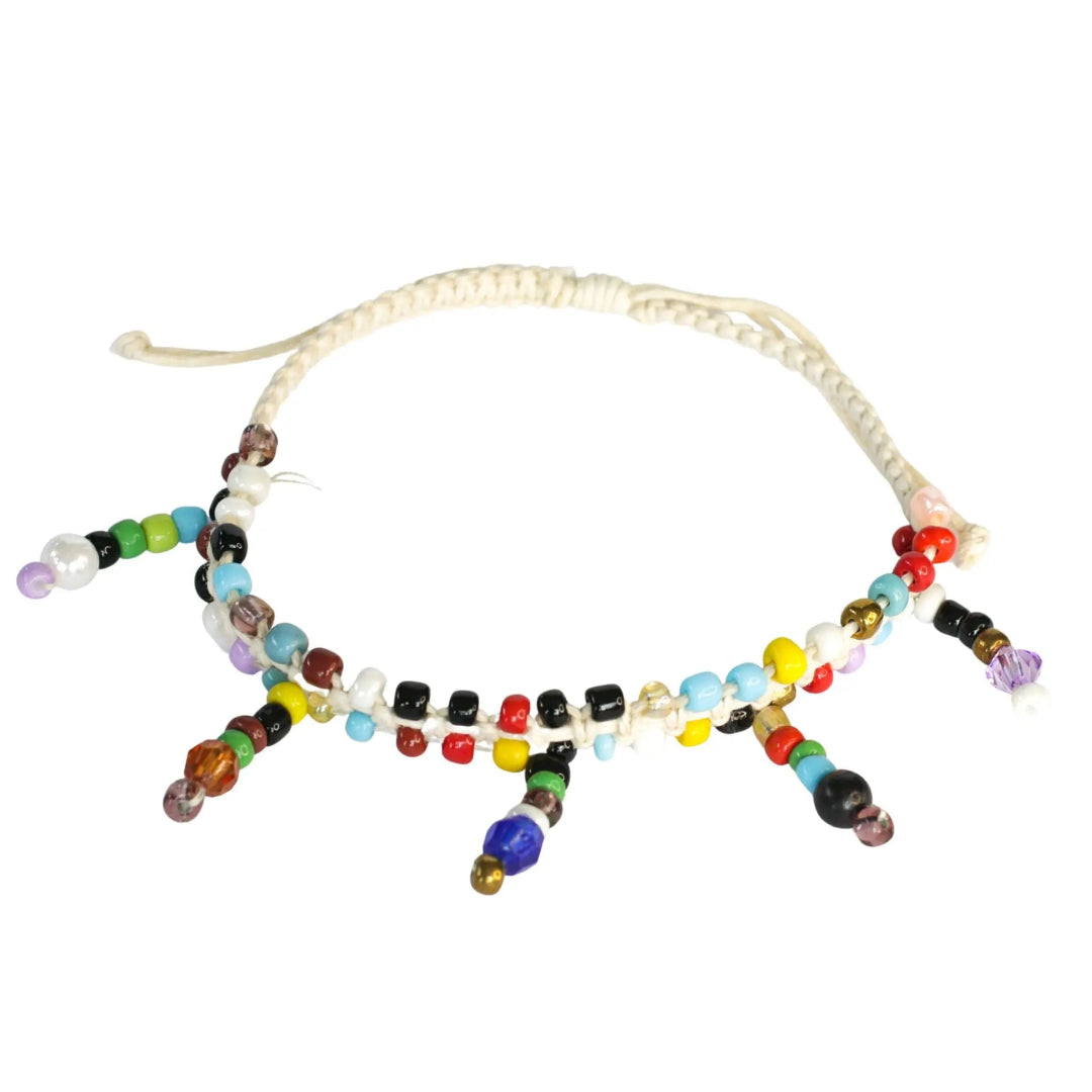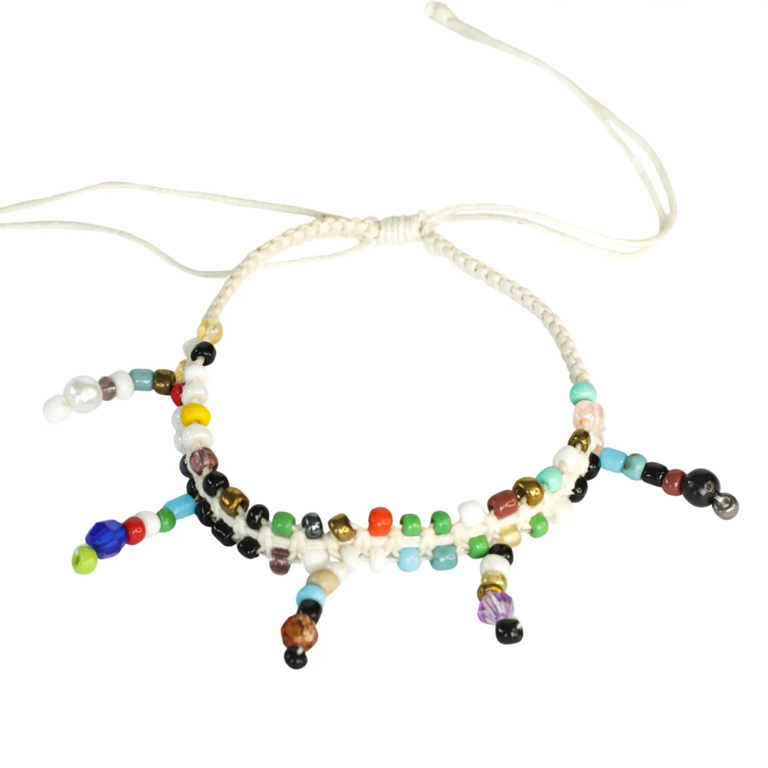 This multi-coloured porcelain beaded anklet is here for colour, movement, and a bit of fun around the ankles. With a joyful mix of bright porcelain beads and playful little dangly details, it’s designed to catch the light – and a few compliments – every time you move.