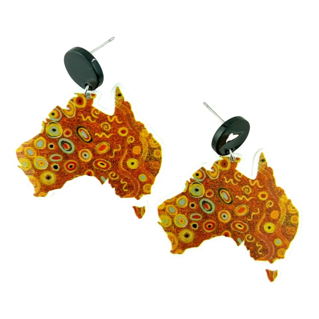 These Dreamscape Australia Map Earrings are a bright, artistic take on classic Australiana. Featuring swirling, dot-inspired patterns in two bold colourways — deep navy or warm earthy orange - each pair captures the movement, texture and creativity so often seen in Australian art styles. They’re lightweight, glossy and full of personality, making them a fun, expressive piece for summer outfits, weekend adventures or gifting with a touch of homegrown charm.