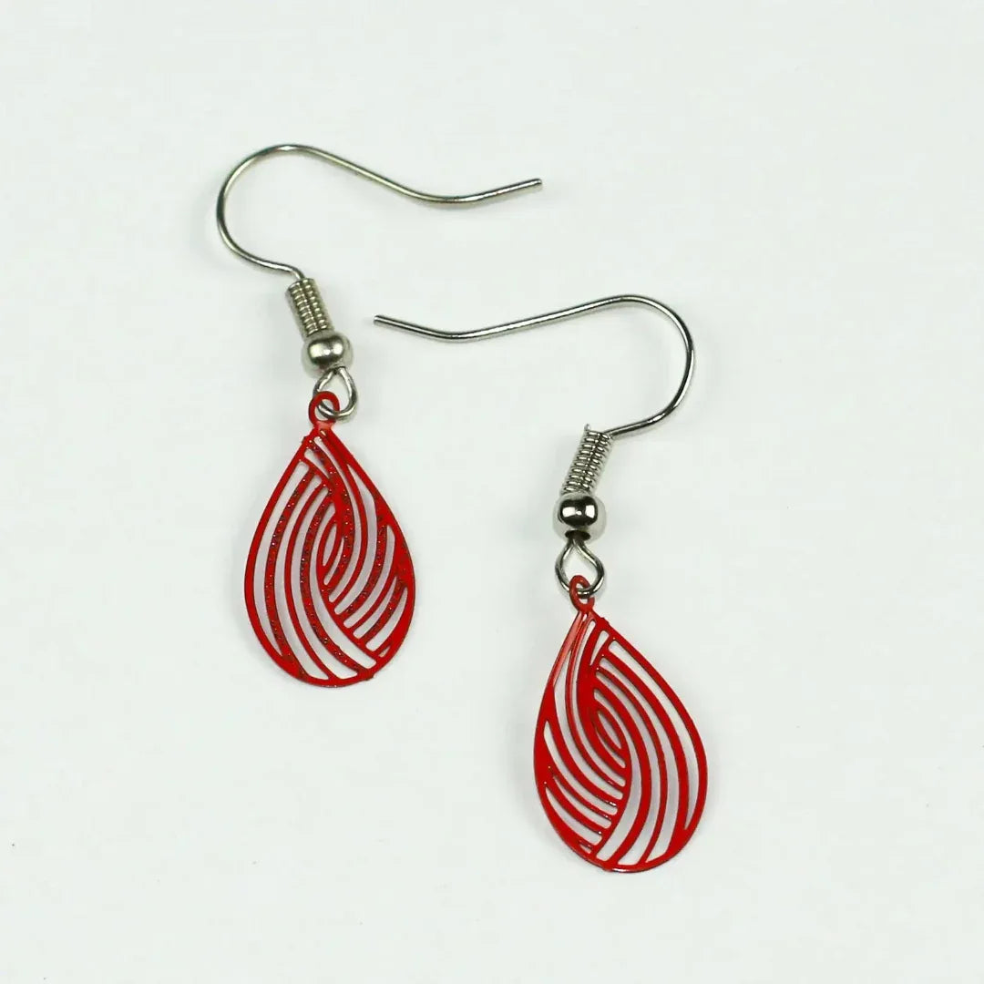 Filigree Teardrop Drops in Red, Black, Teal & Deep Blue