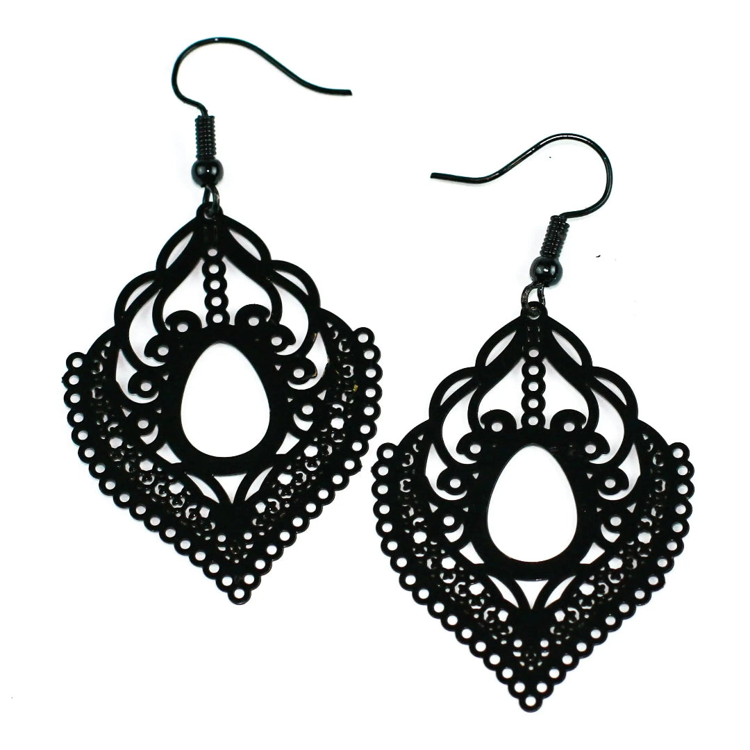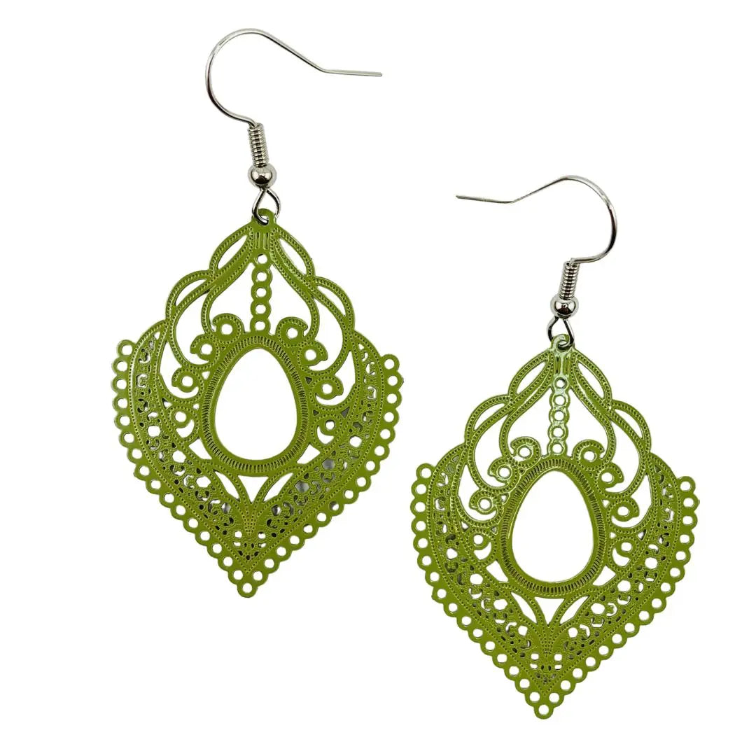 Fancy Filigree Drop Earrings - Available in Pale Pink, Army Green, Red and Black