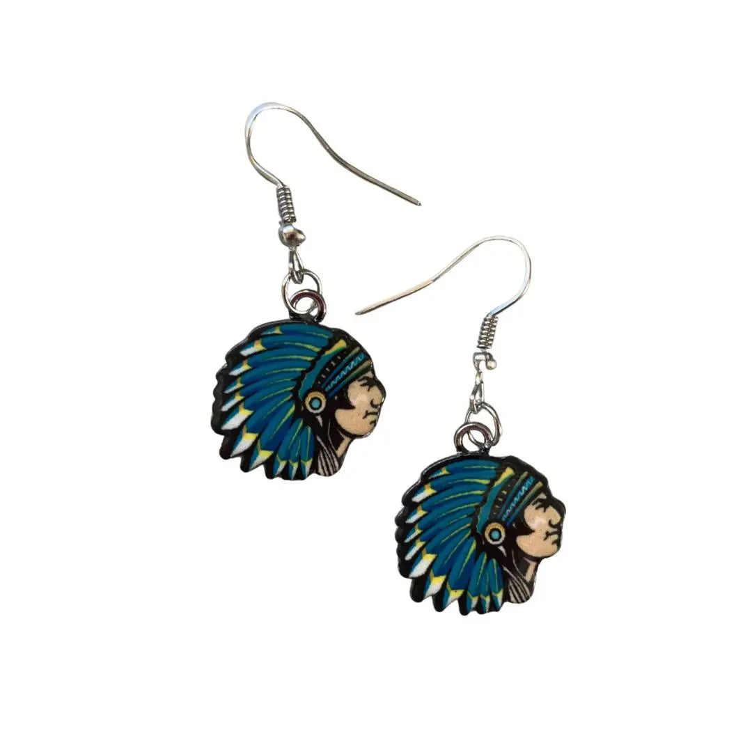 Indian Chief Dangles - Available in Blue, Rainbow & White.