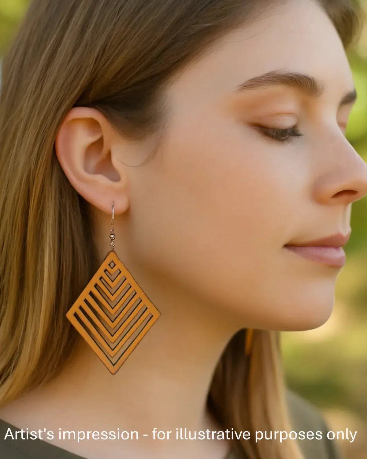 Add a little edge to your earthy aesthetic with the Izzy Timber Diamond Geometrical Drops. These bold, diamond-shaped earrings feature a striking chevron cut-out design that brings a modern, graphic vibe to the natural warmth of honey-toned timber.