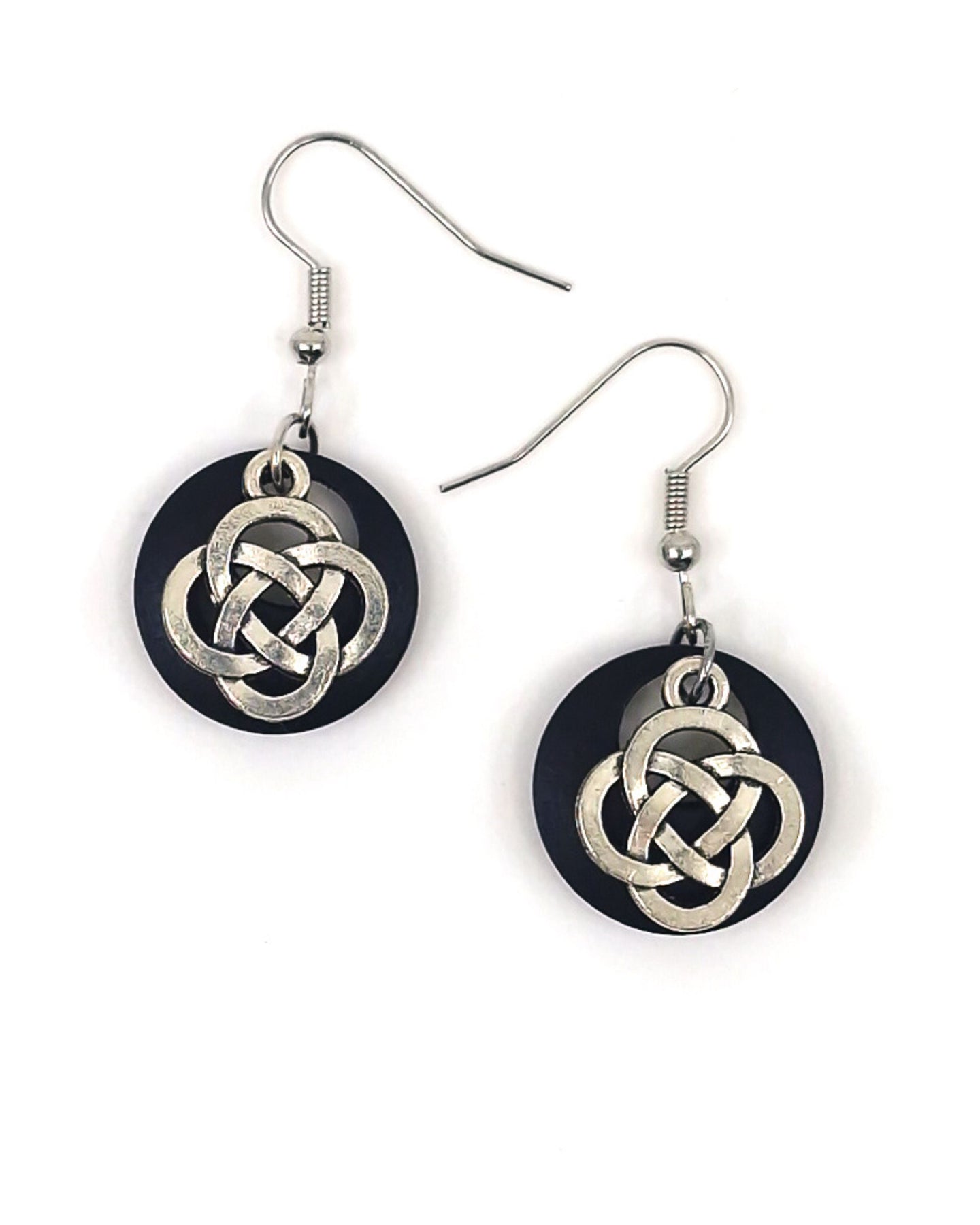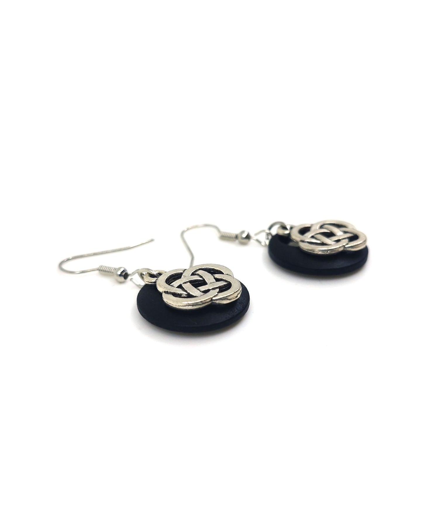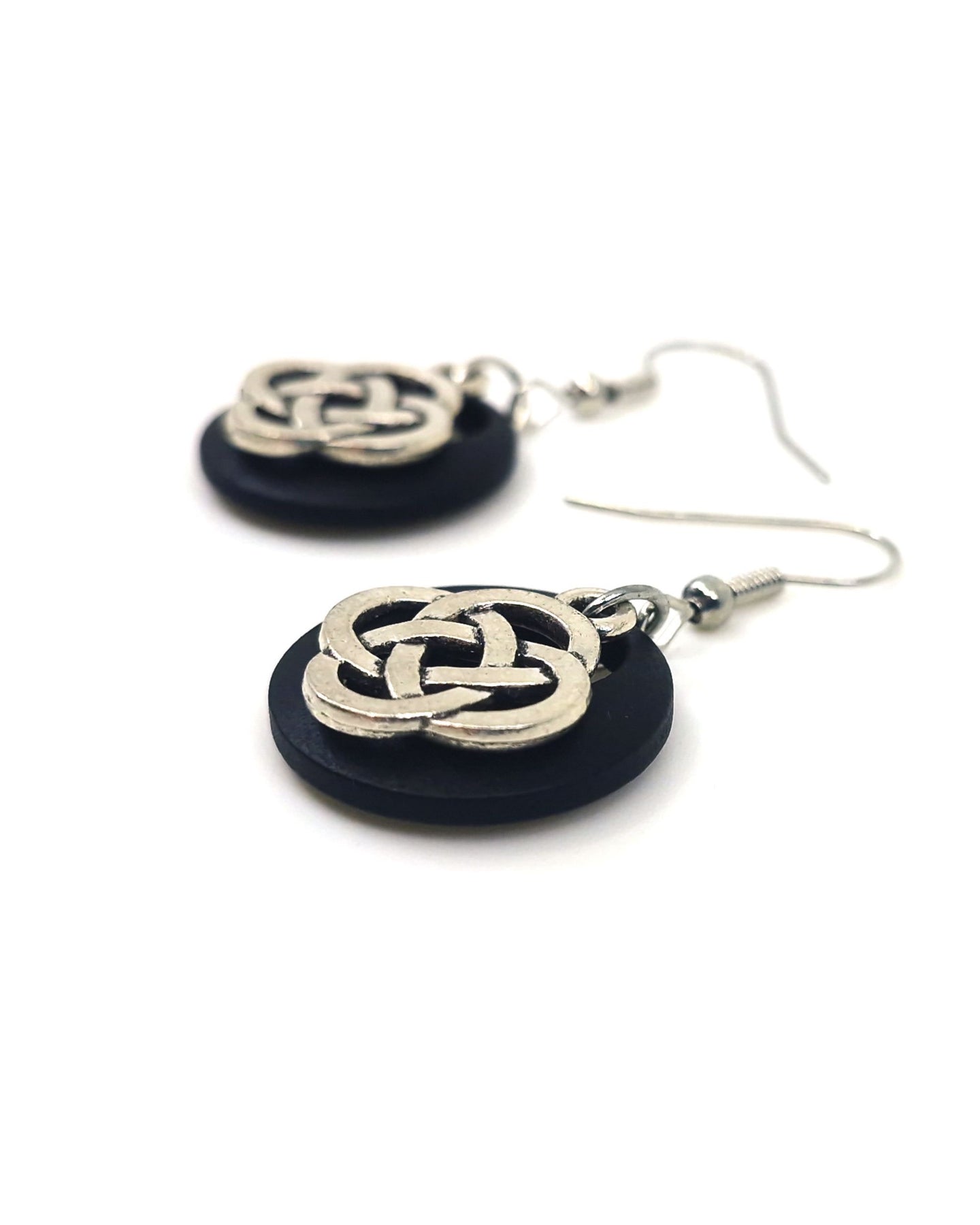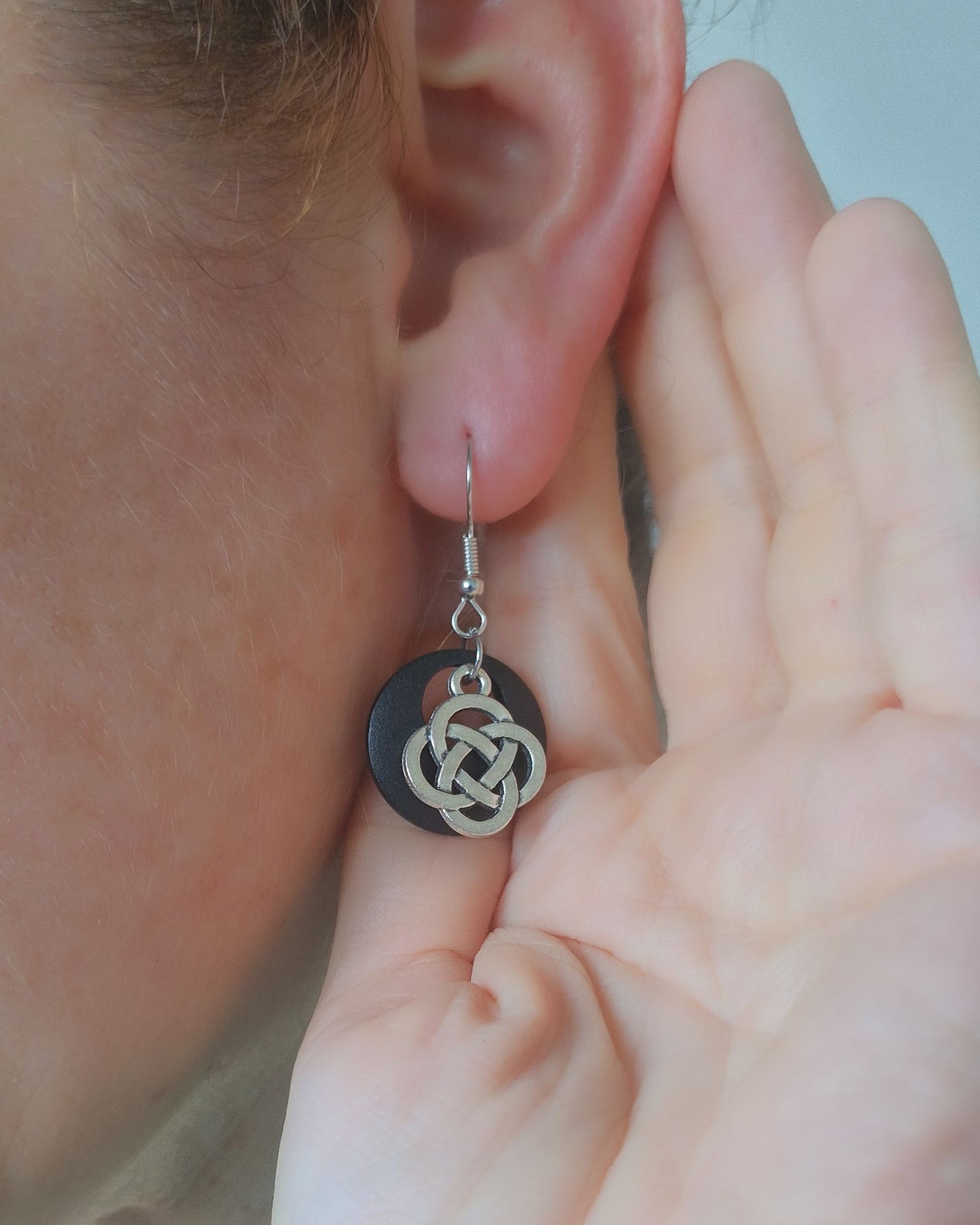 Featuring an interwoven silver-tone Celtic knot set against a black timber backing, they have a bold contrast that draws the eye without feeling loud. The design carries a sense of connection, strength, and continuity, making them feel thoughtful and grounded rather than purely decorative.