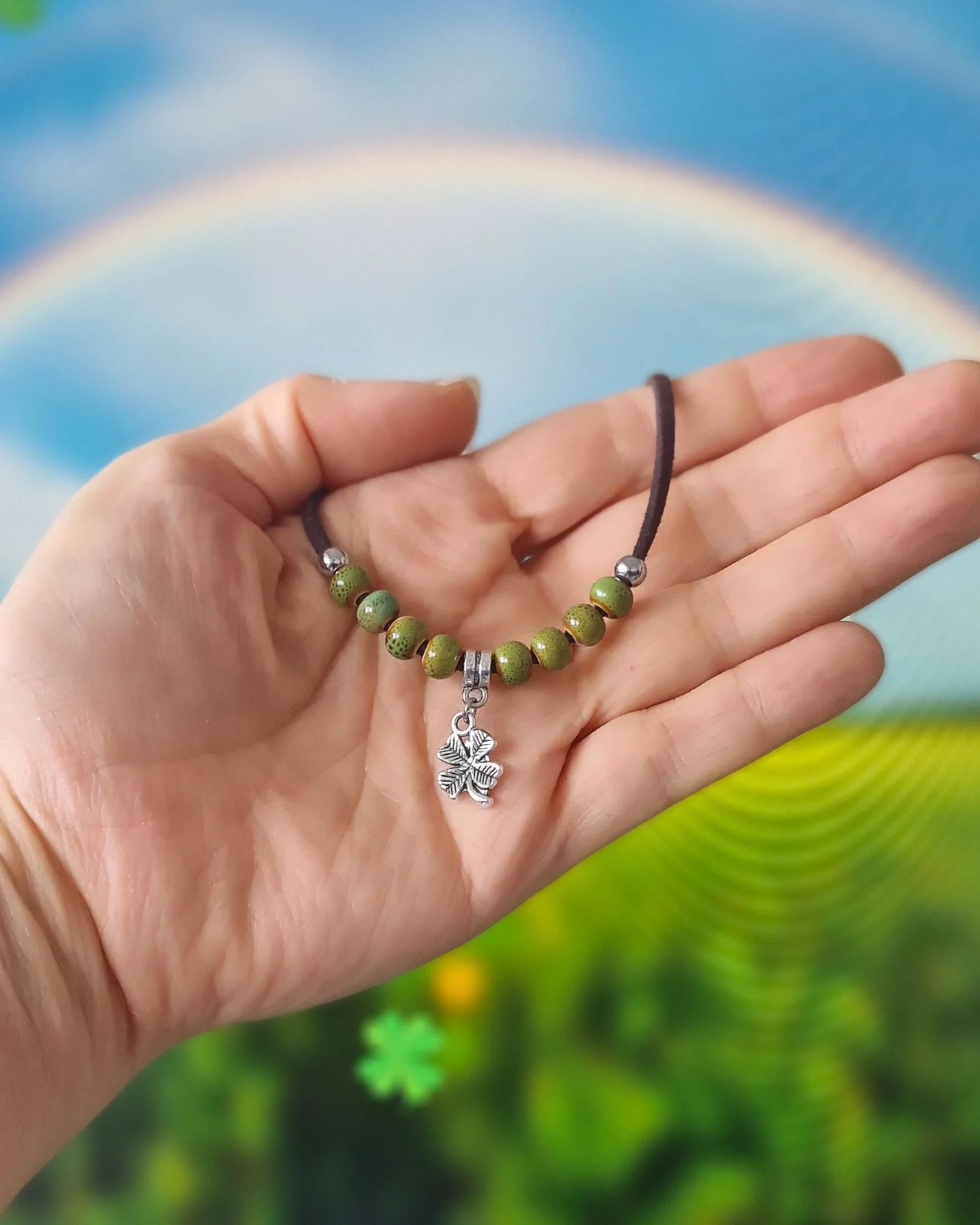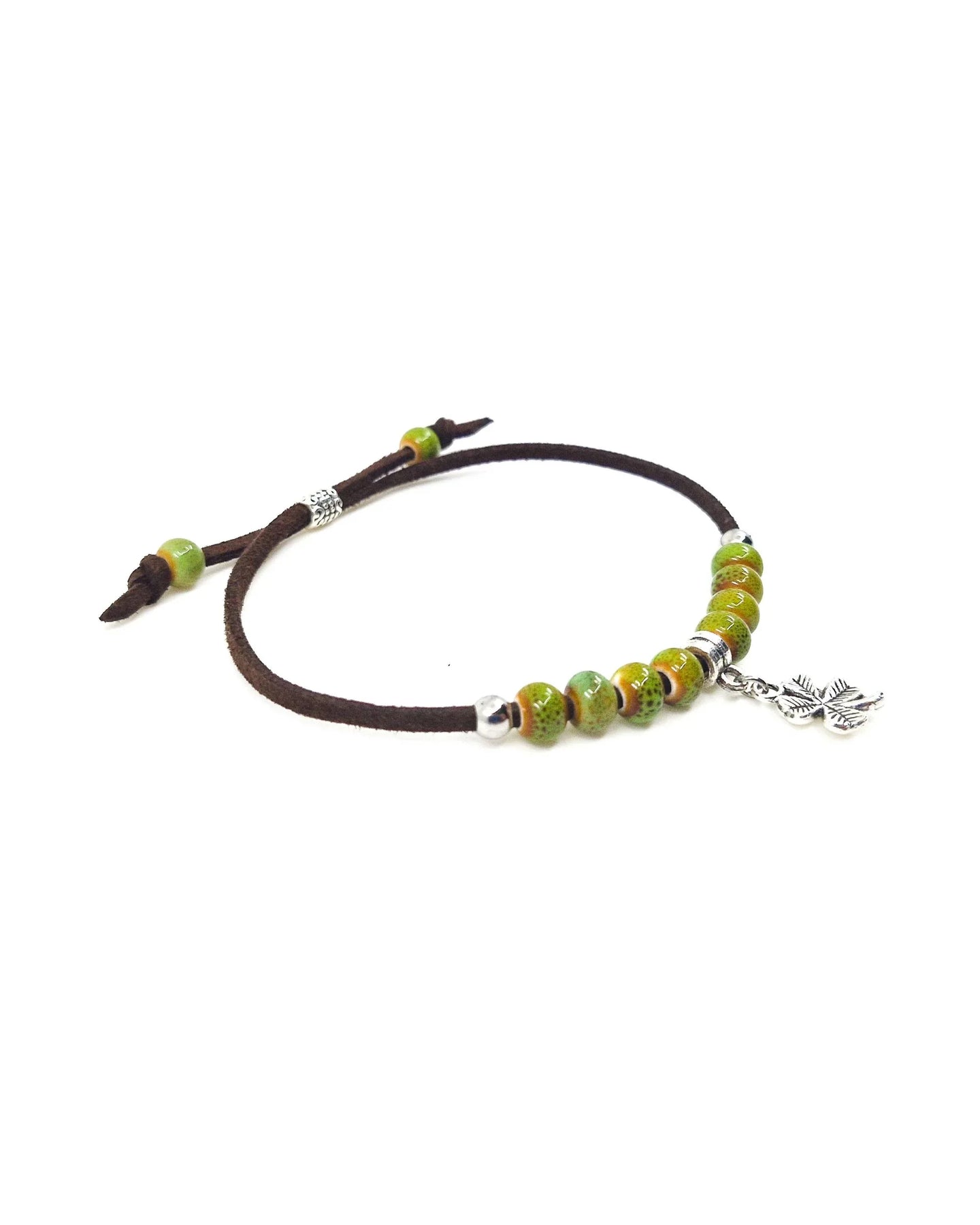 The brown faux leather cord adds a natural, grounded feel and adjusts easily for the perfect fit. Whether you wear it as a daily reminder of good fortune or pull it out for St Paddy’s celebrations, this bracelet fits right in with your laid-back, boho style.