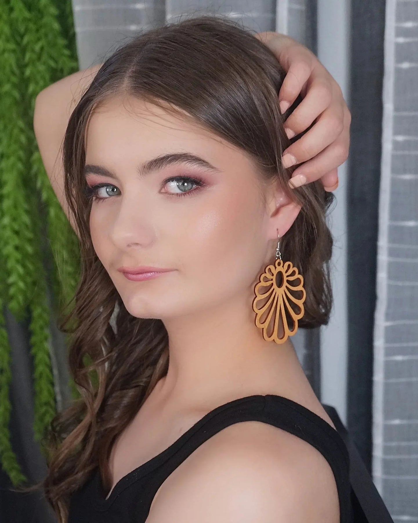 The warm, golden grain of the wood acts like a total neutral, so you can clash them with bold patterns or let them stand out against a crisp white tee. They frame your face with a soft curve that feels organic and grounded. Since they are so light, you can pop them on at 8am and still be rocking them when the espresso martinis come out without feeling that "heavy earring" fatigue.