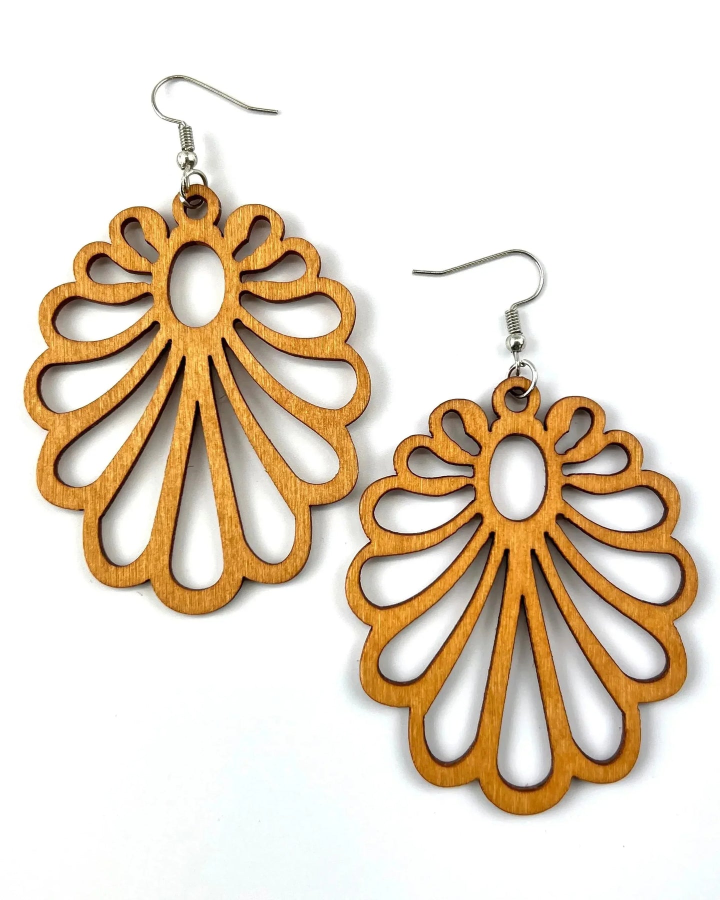 Looking for that go-to accessory that works with everything? Our Claire Timber Drops are the ultimate natural wood earrings, featuring a soft, floral-inspired fan design. Carved from warm honey-brown timber, these large open-cut drops are incredibly lightweight. They offer a relaxed boho vibe that transitions easily from a morning coffee run to sunset drinks.