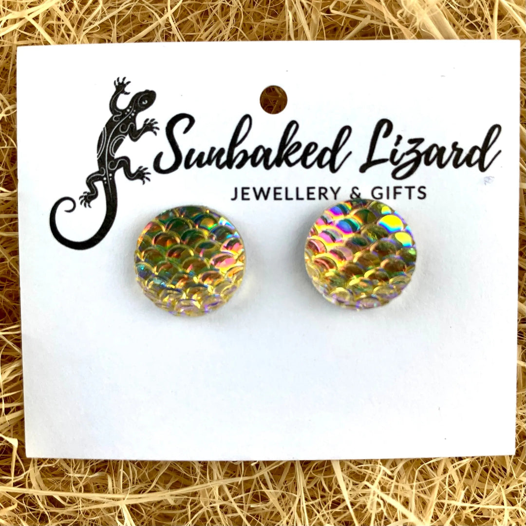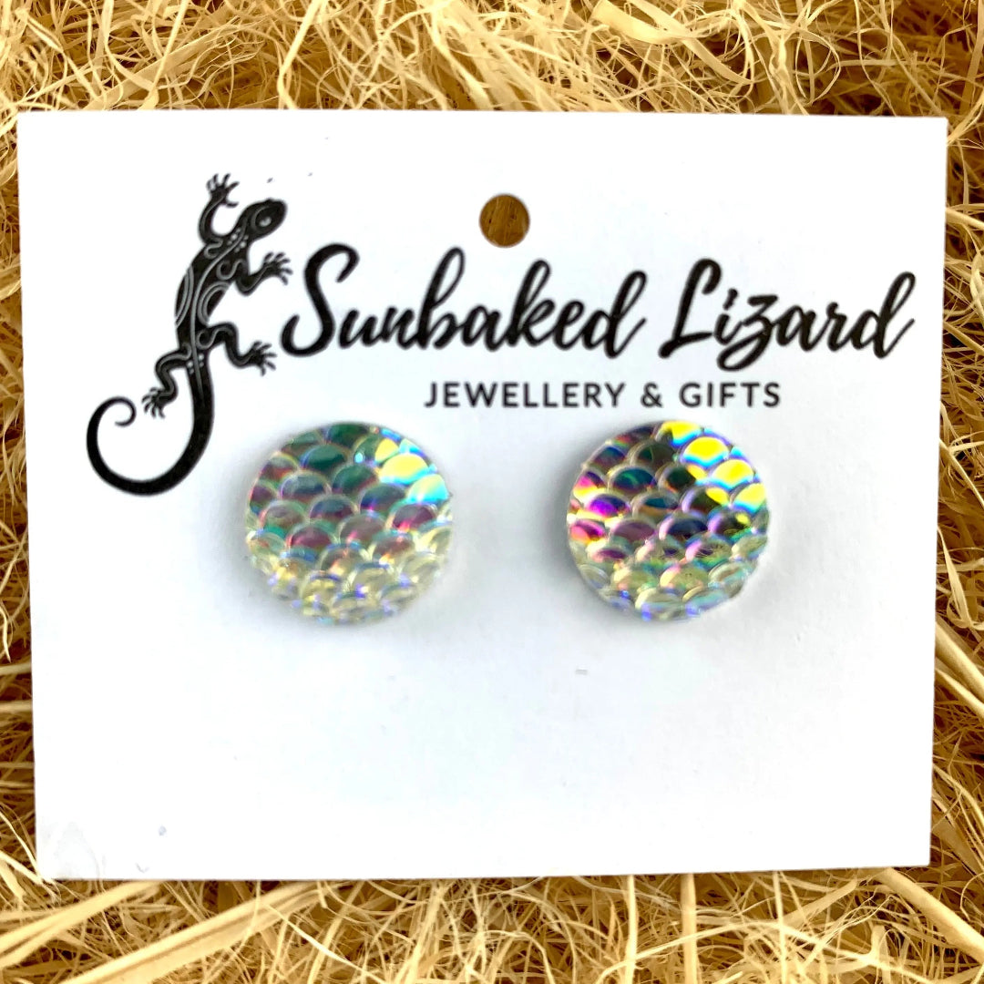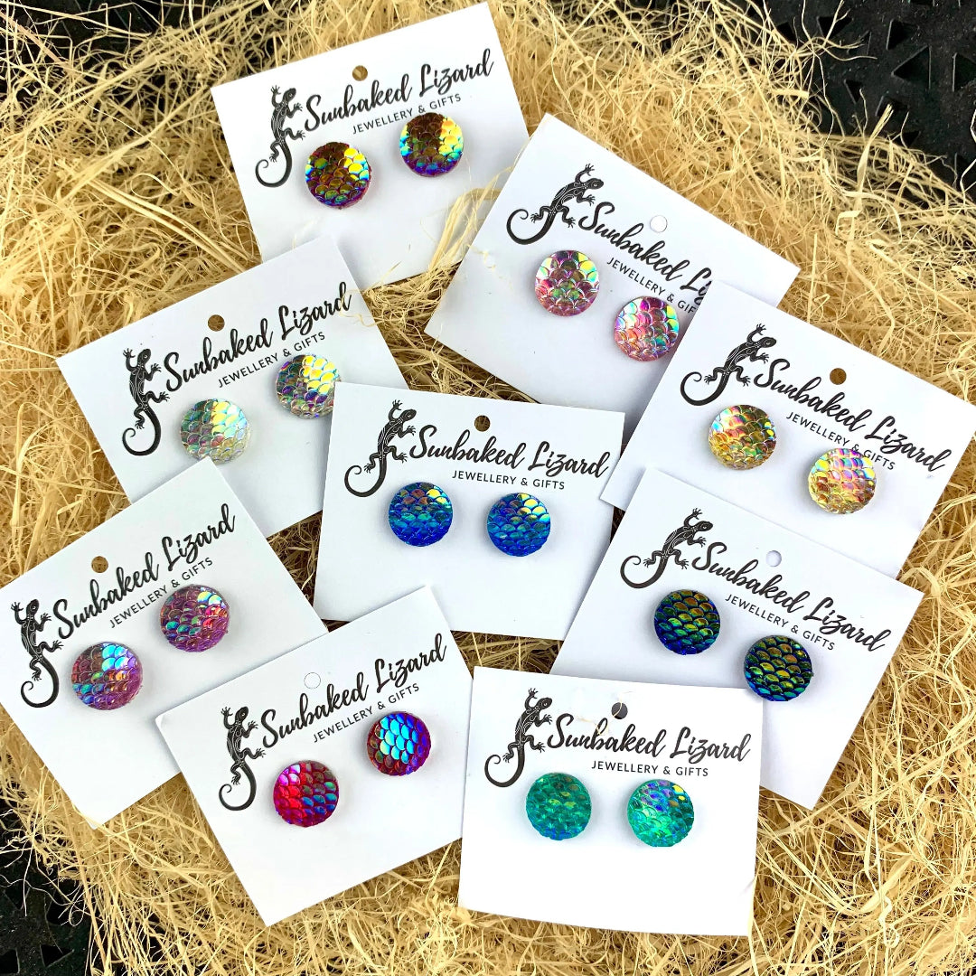 Mermaid Glitter Scale Studs - 7 Colours Sunbaked Lizard Jewellery & Gifts