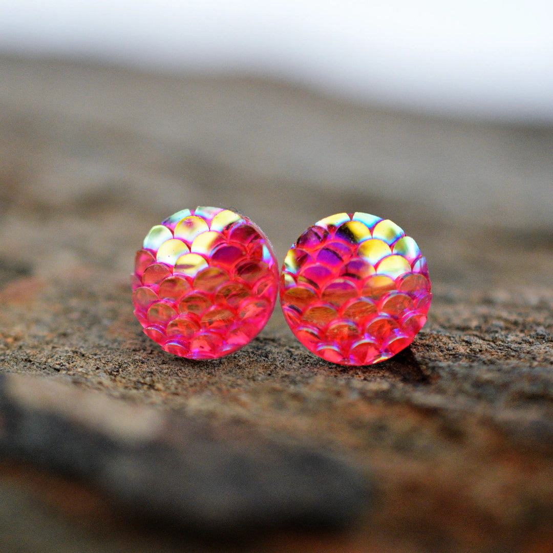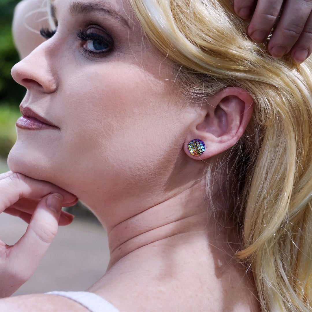 Colourful Mermaid Scale Stud Earrings with a Sparkly Finish