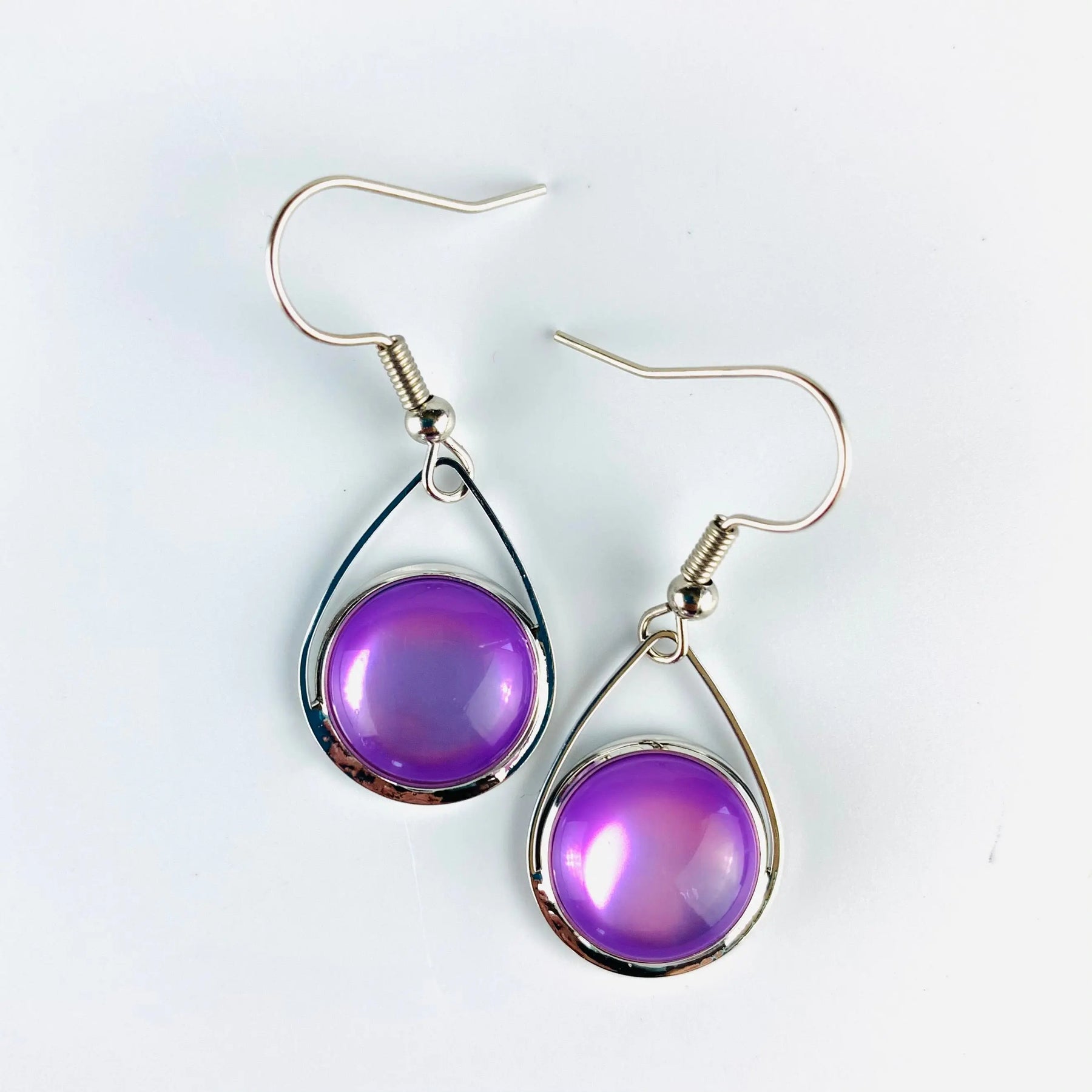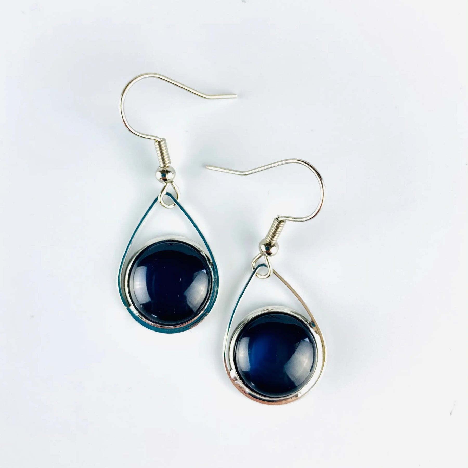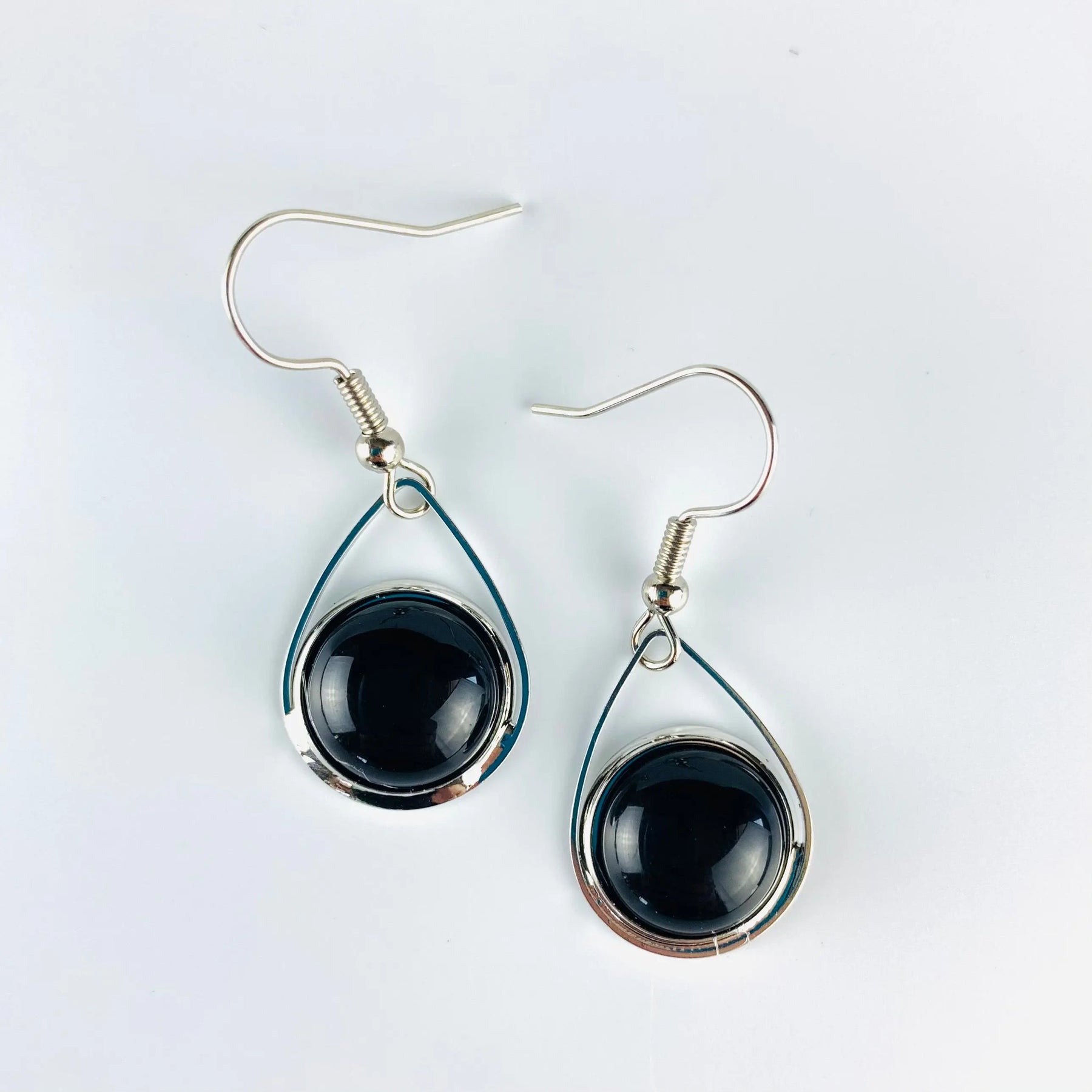Elegant Teardrop Earrings with Glass Cabochon Detail