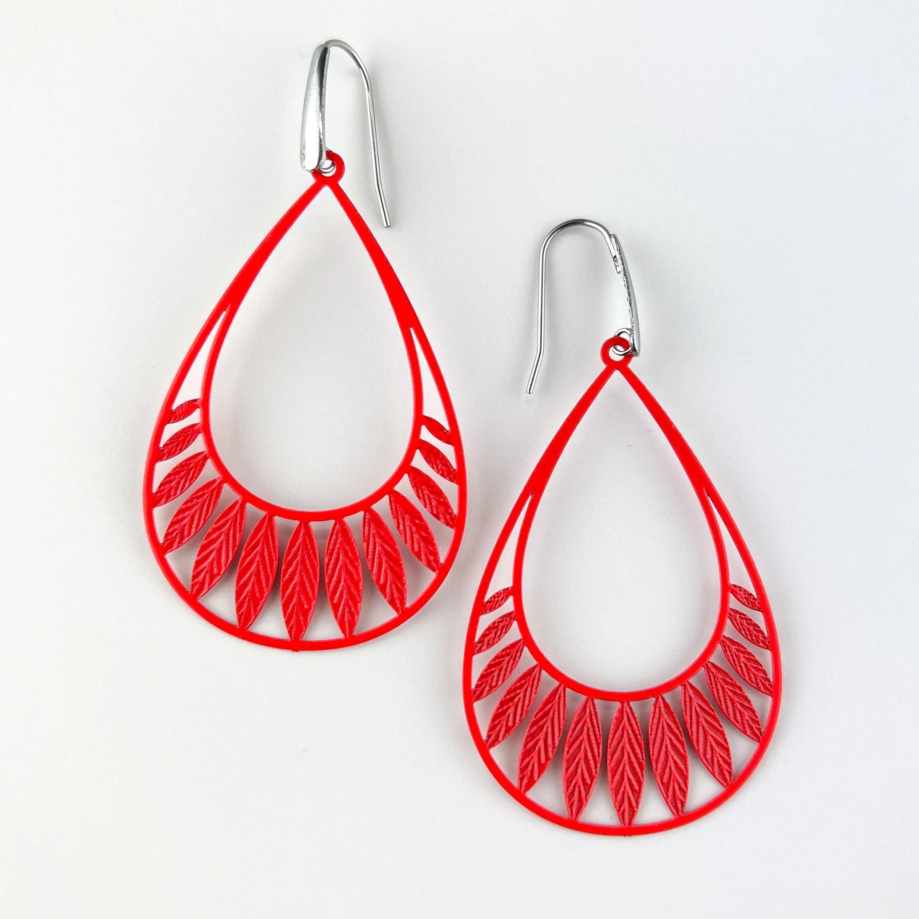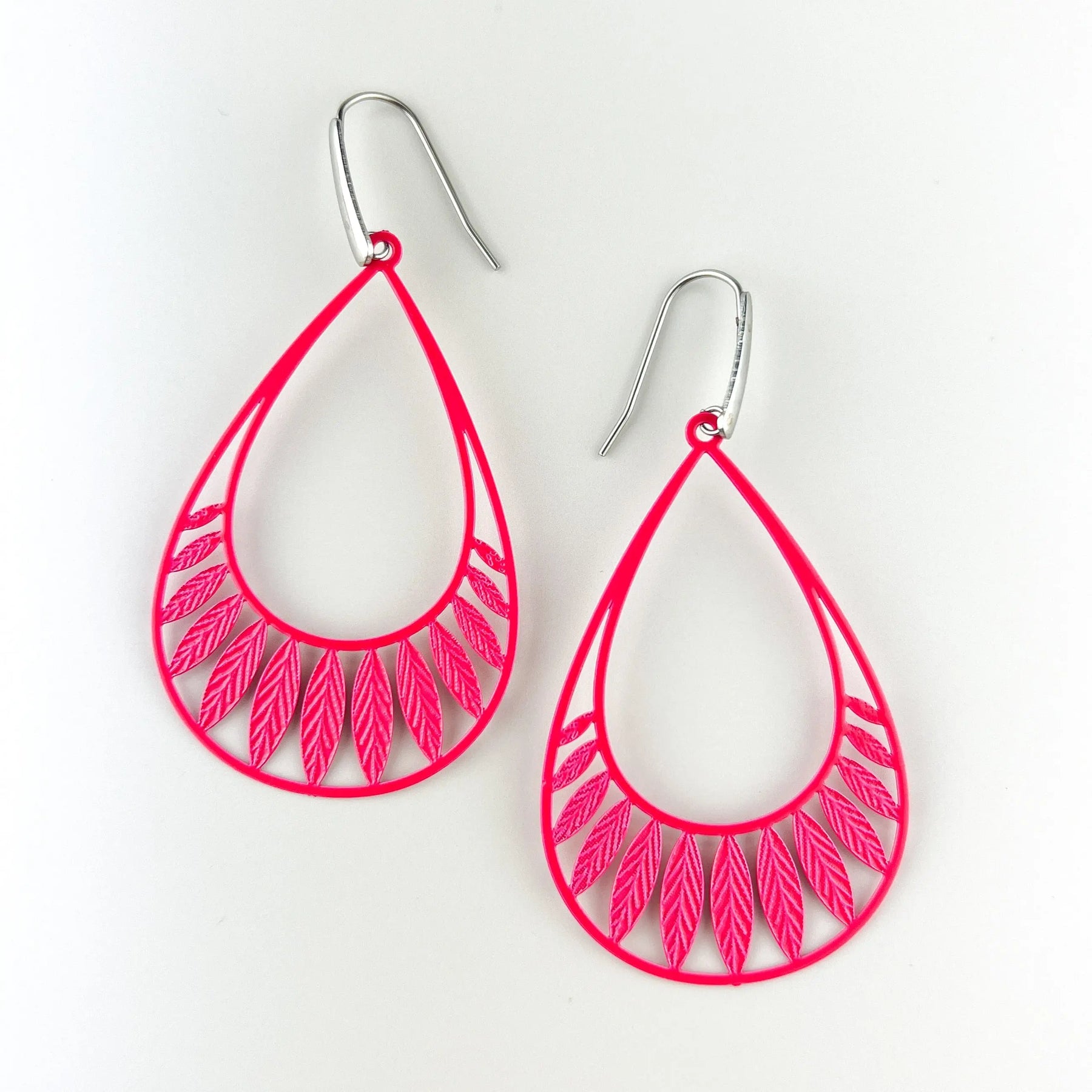 Filigree Fine Metal Teardrop Dangles - Available in Bright Pink, Bright Orange, Mauve, & Silver