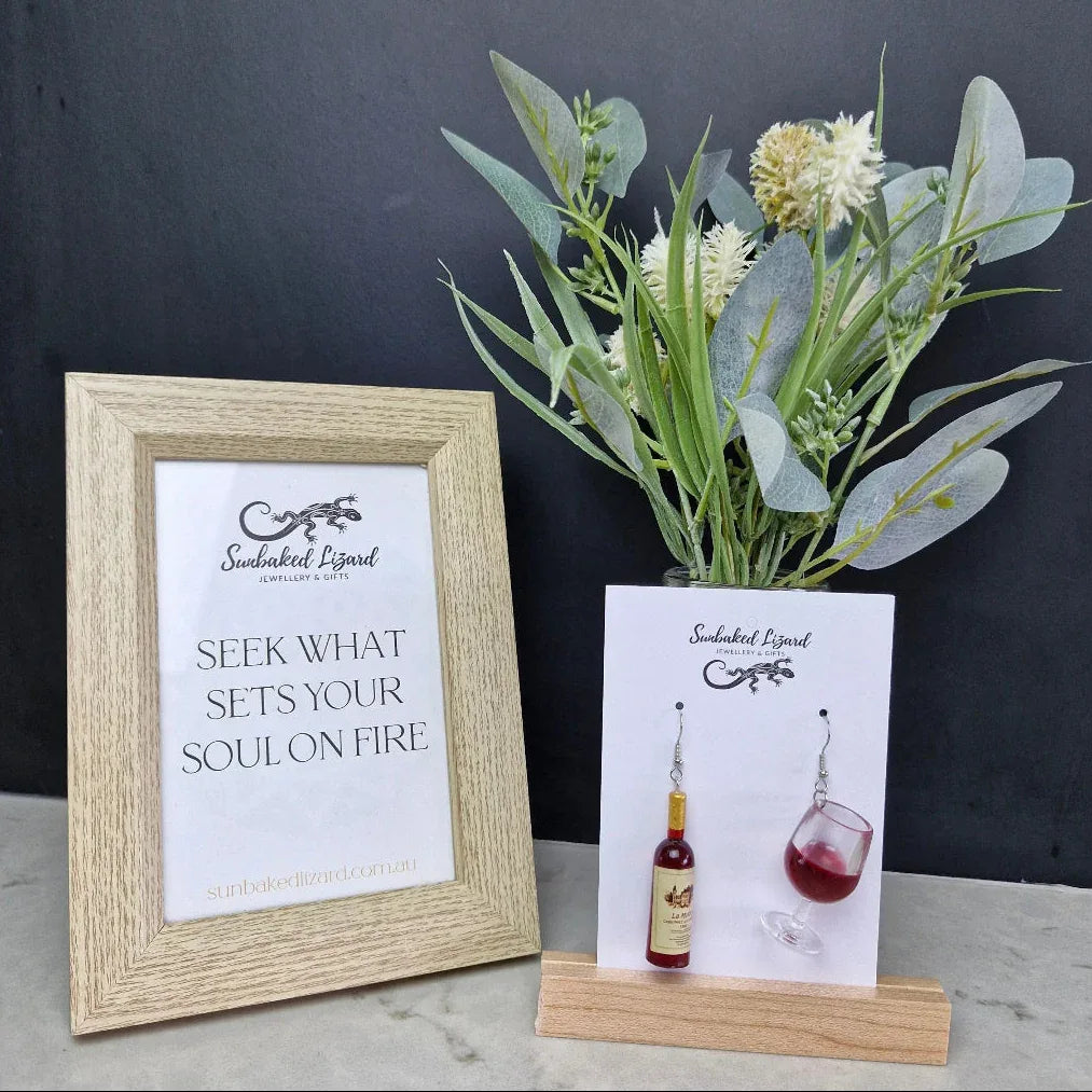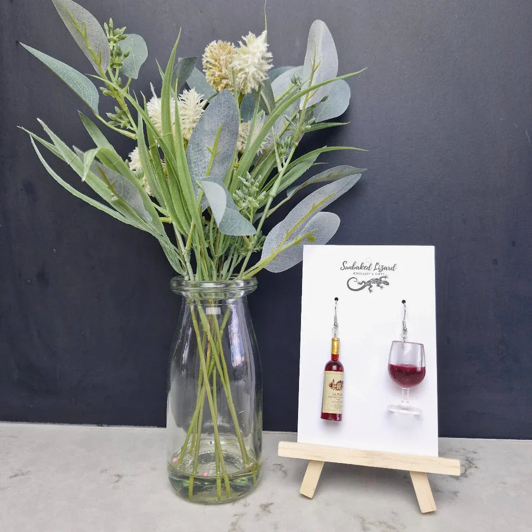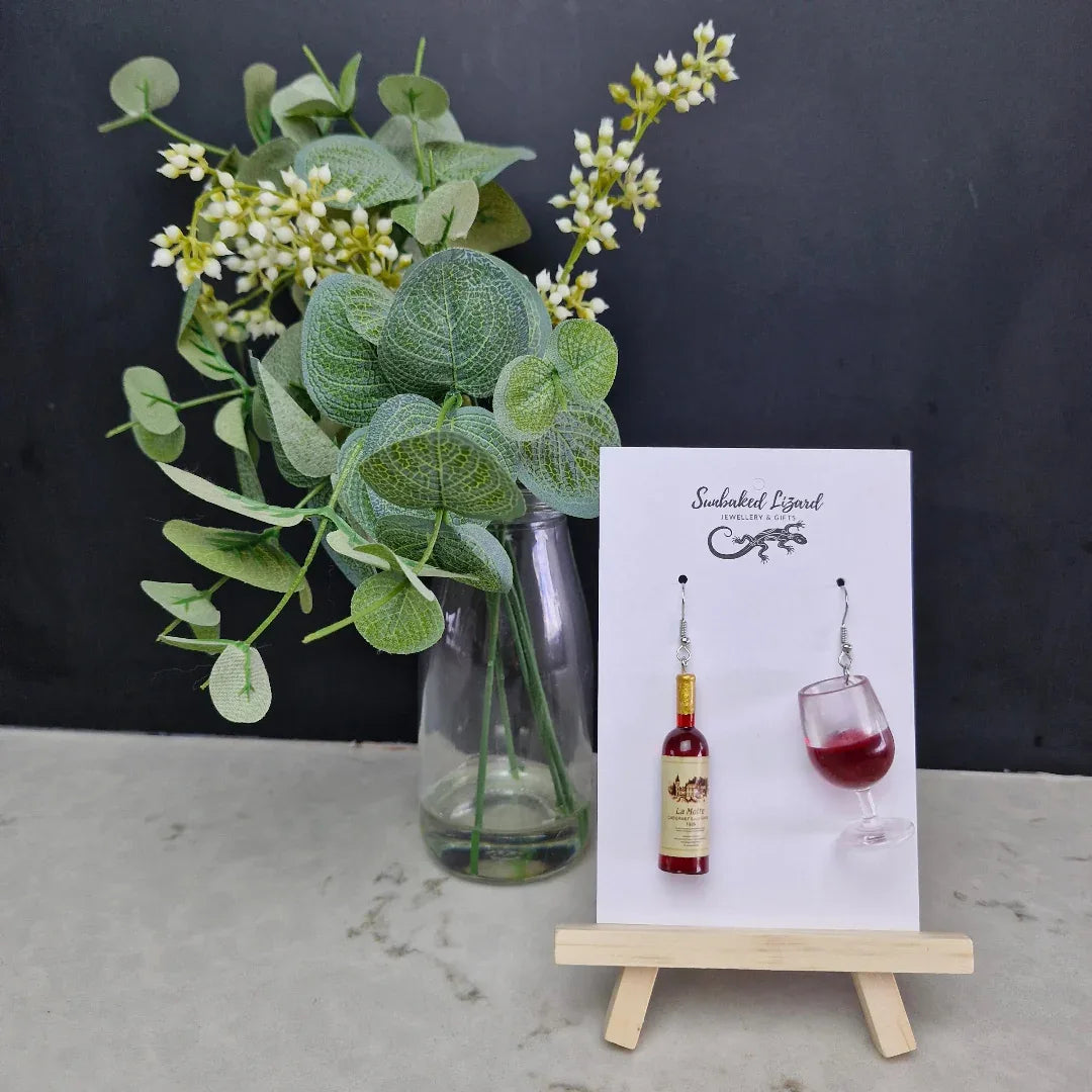 These are the earrings for the girls who say, “I’ll just have one,” and then have the best night ever. We’ve packed an incredible amount of detail into these - the tiny wine bottle features a gold foil neck and a realistic cream label, while the wine glass looks like it’s frozen mid-swirl with a rich burgundy red. They’re amazingly realistic and catch the light beautifully every time you move.